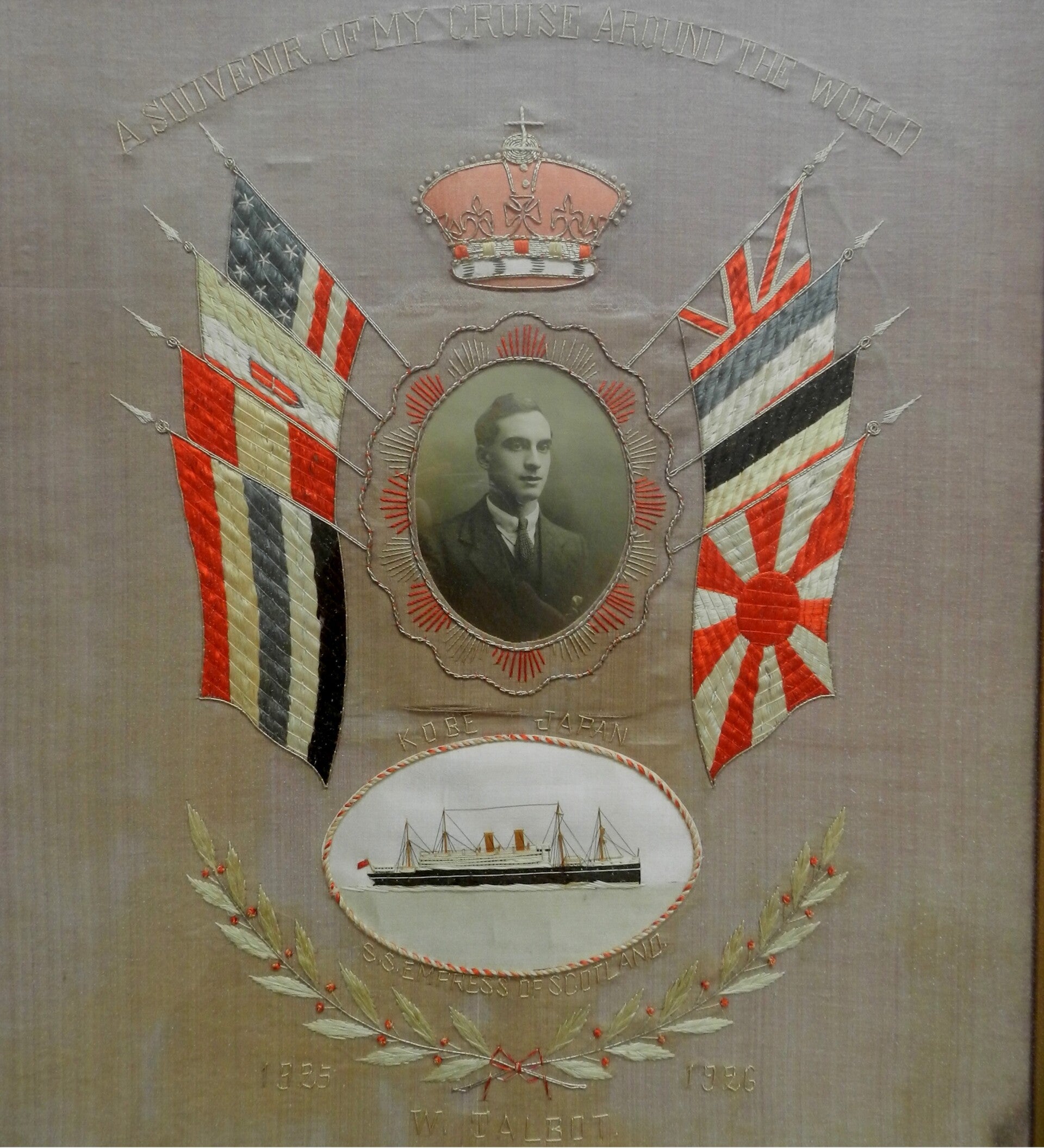 My heirlooms include the framed embroidery found in my mother-in-law's attic that tells a tale of a worldwide cruise, while my mother has my Grandfather’s WW1 medals who lied about his age to enlist. Two lives bound in thread and heritage, tradition and institutions.